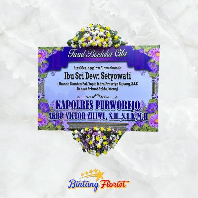 Pesan rangkaian bunga duka tutup peti di malang Bintang Florist: Penyedia karangan bunga terbaik kota Malang. Bukan semua makna bisa disampaikan lewat ucapan. Dalam satu rangkaian bunga, terkandung banyak makna yang tak terucap. Bintang Florist Malang memberi perhatian pada setiap detail dalam karangan bunga. Bunga yang Anda pesan adalah amanah rasa, dan kami siap menjaganya. Fleksibilitas dan kelengkapan